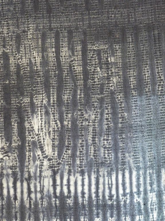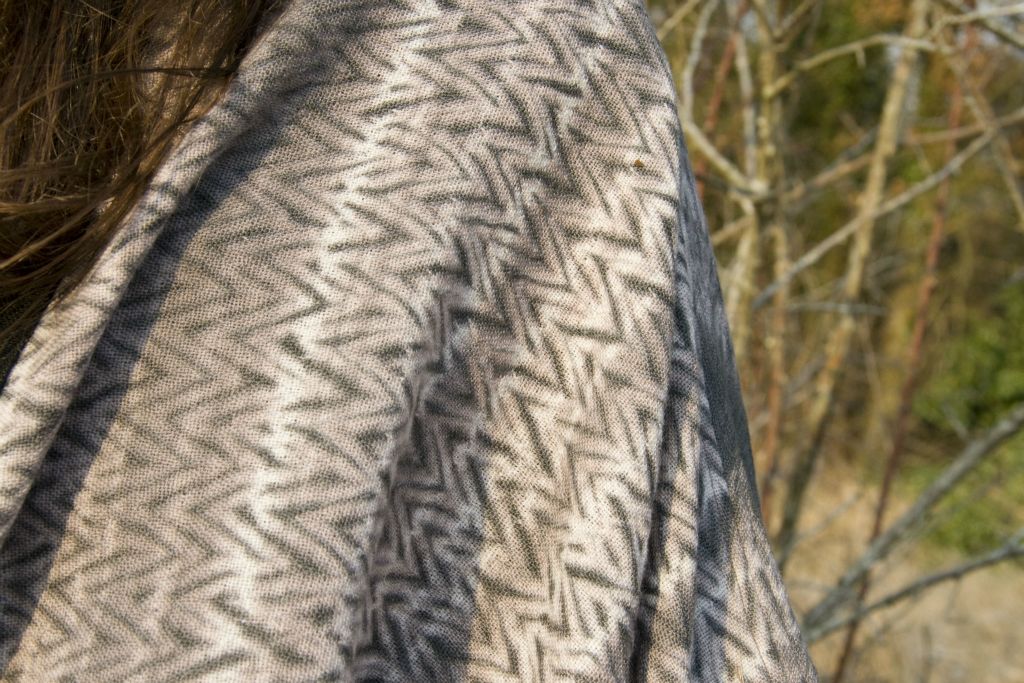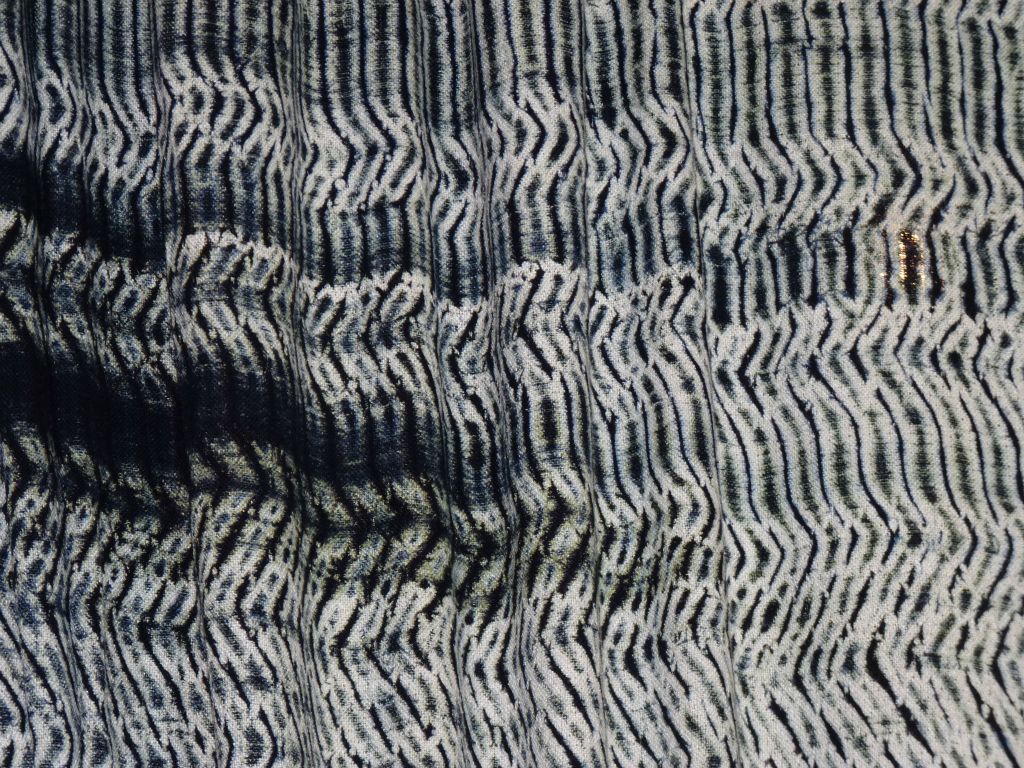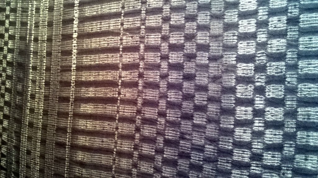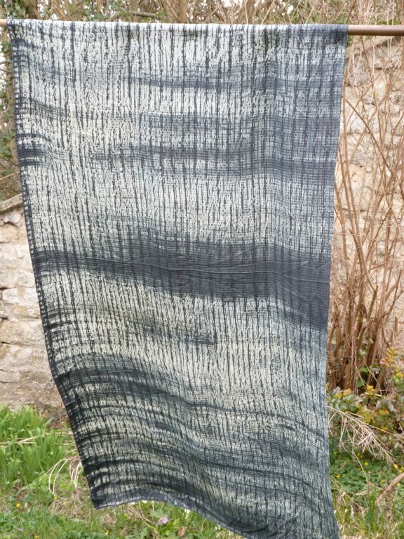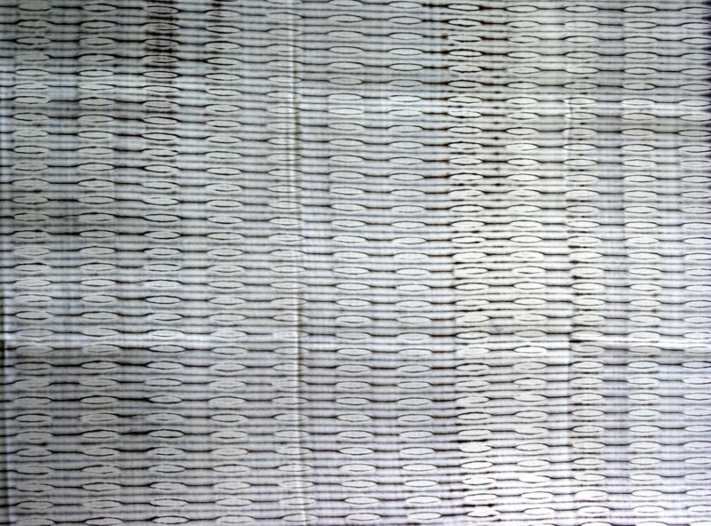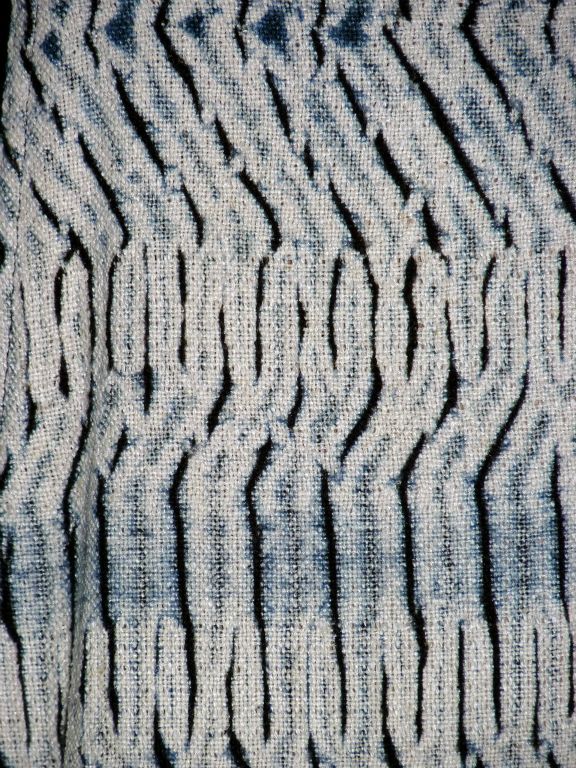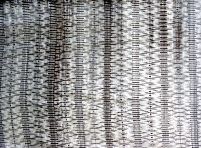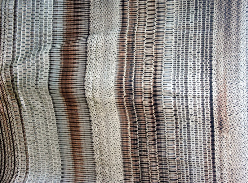 Plissage effectué grâce à des fils coton tissés de façon à créer des grandes flottées, ceux-ci sont ensuite tirés en lisière.