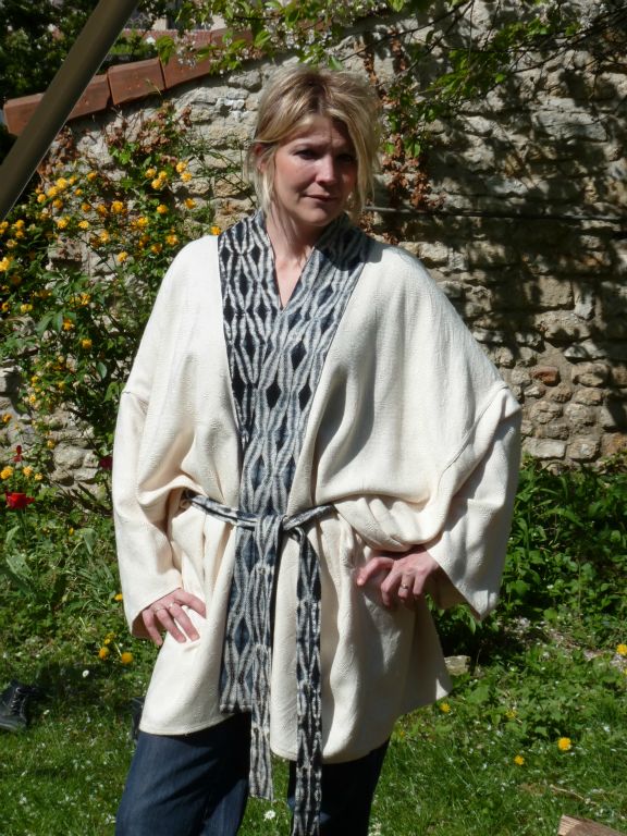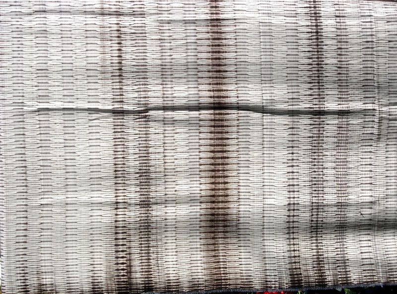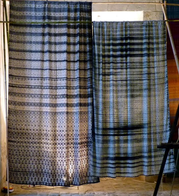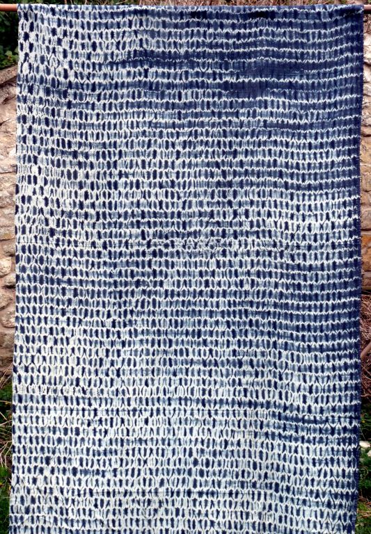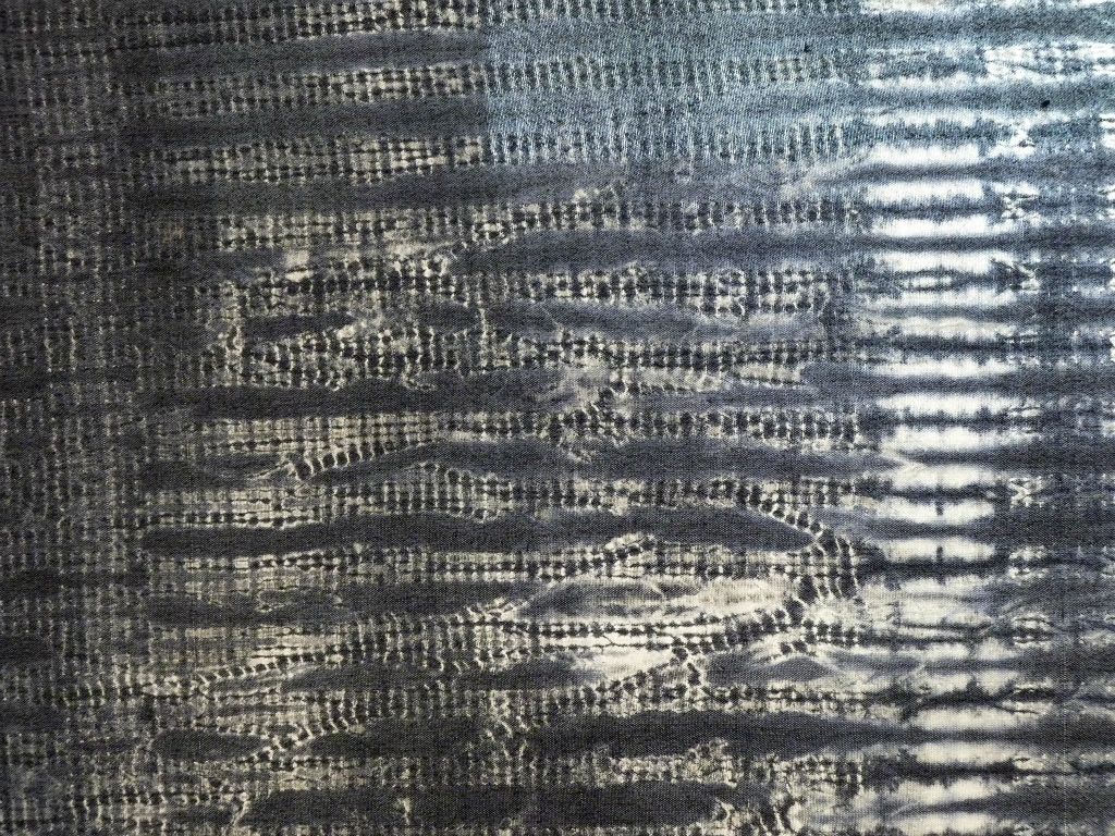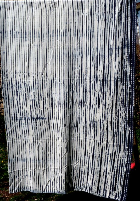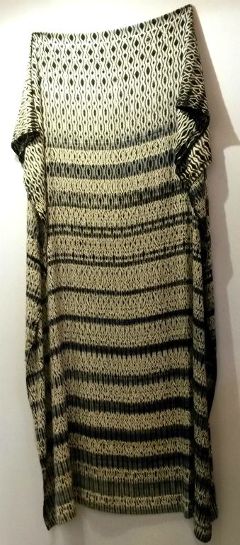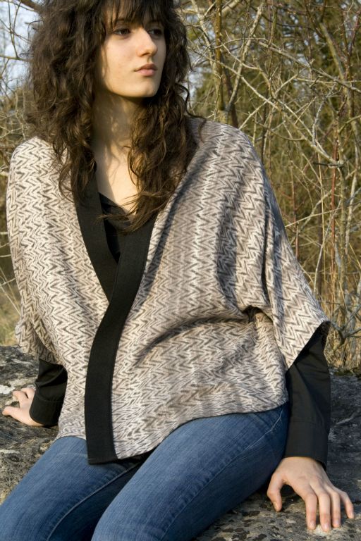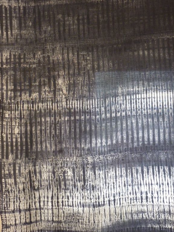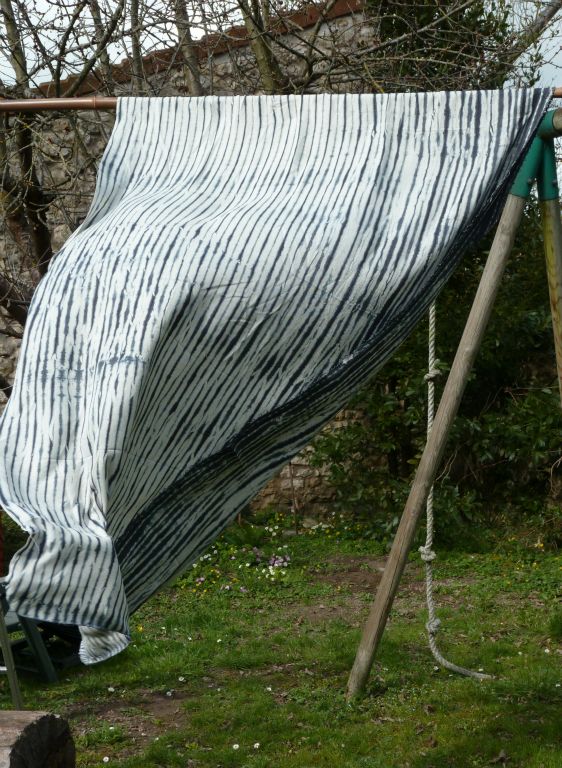 Plissage effectué grâce à des fils coton tissés de façon à créer des grandes flottées, ceux-ci sont ensuite tirés en lisière.