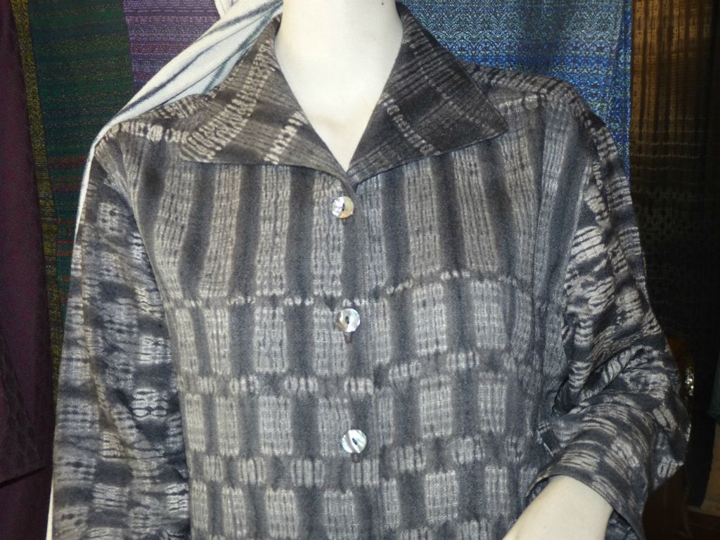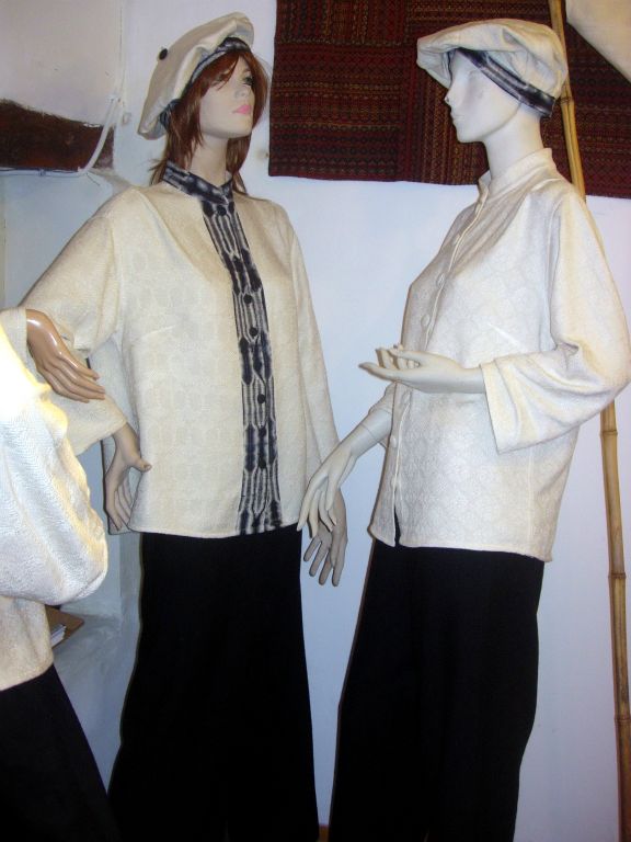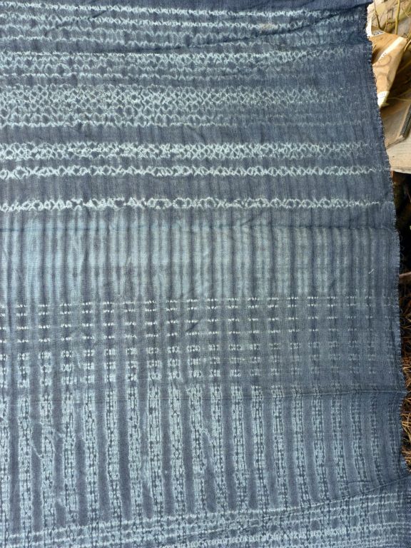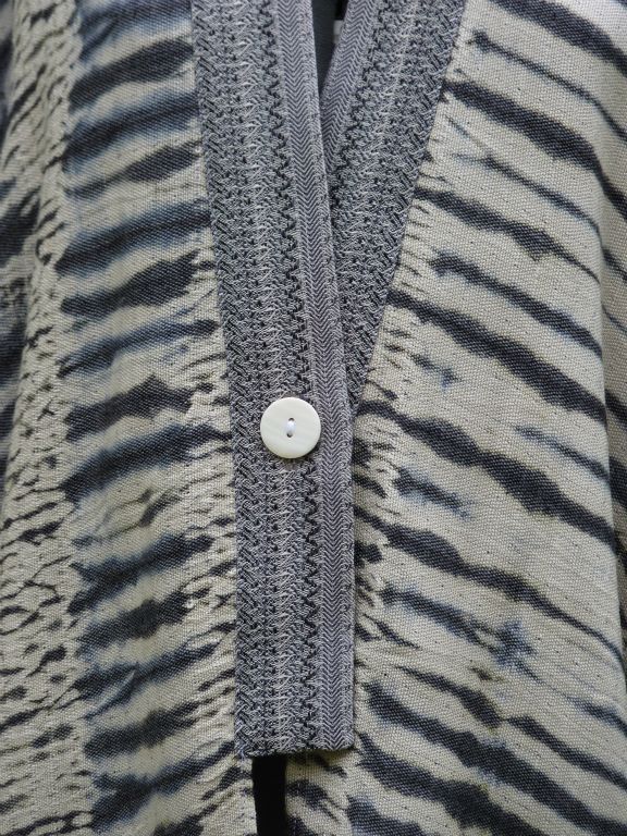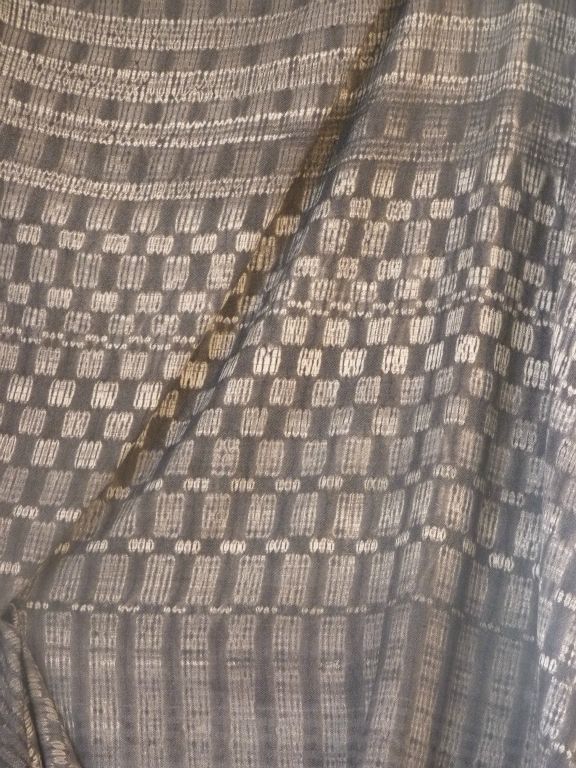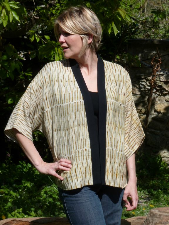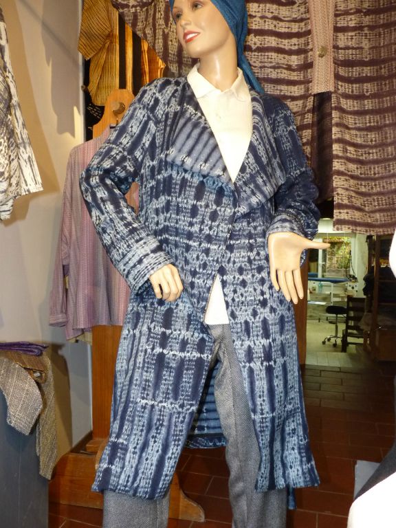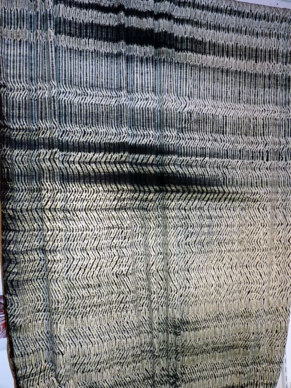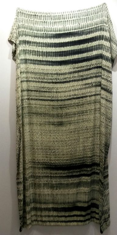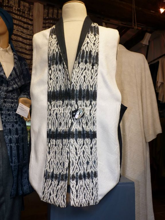 Plissage effectué grâce à des fils coton tissés de façon à créer des grandes flottées, ceux-ci sont ensuite tirés en lisière.